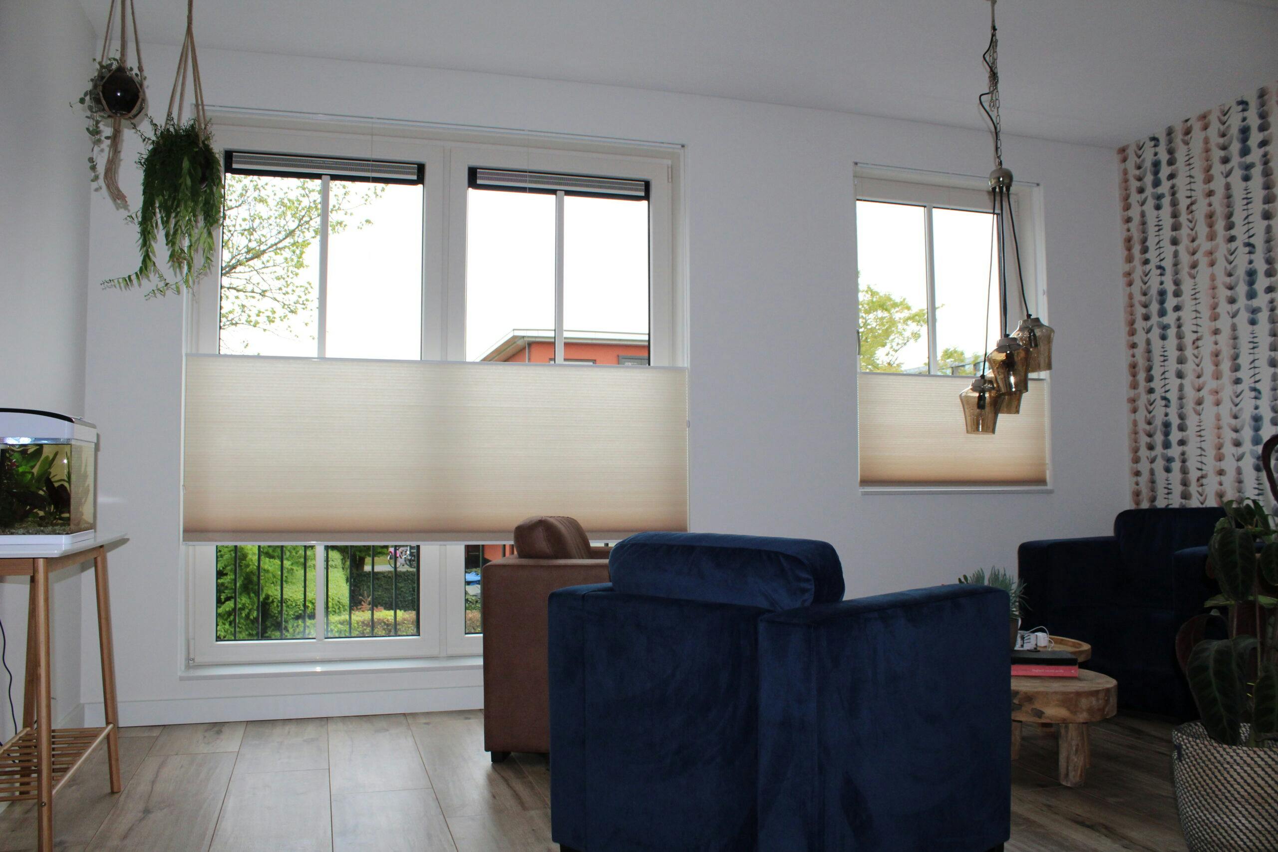 Een perfecte match bereikt u door te focussen op natuurlijke materialen en een neutraal kleurenpalet. Denk aan linnen structuur plisségordijnen in beige of grijs, houten of bamboe look jaloezieën en rolgordijnen in een neutrale kleur of zachte bruintinten. Deze kleuren en materialen passen perfect bij de Japandi stijl en dragen bij aan een minimalistische en warme uitstraling in uw Japandi interieur.